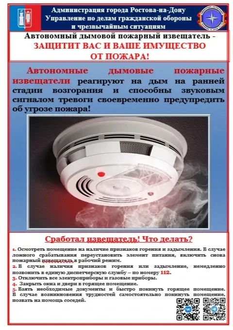 Управление по делам ГО и ЧС. Автономный дымовой пожарный извещатель-защитит вас и ваше имущество от пожара!