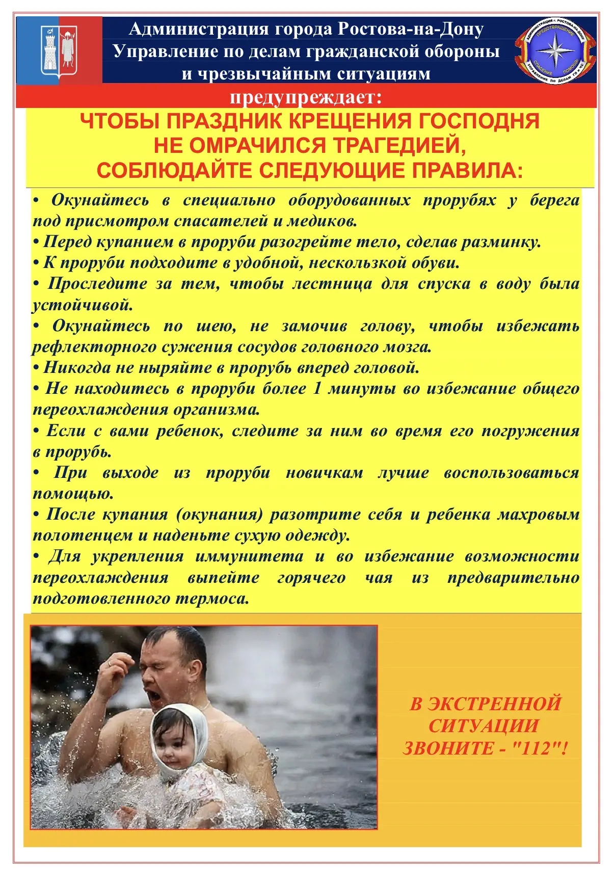 Управление по делам ГО и ЧС предупреждает: Чтобы праздник крещения господня не омрачился трагедией, соблюдайте следующие правила.
