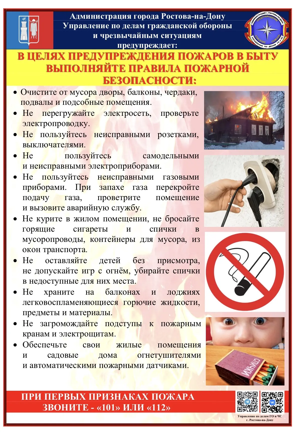 Управление по делам ГО и ЧС предупреждает: в целях предупреждения пожаров в быту выполняйте правила пожарной безопасности.