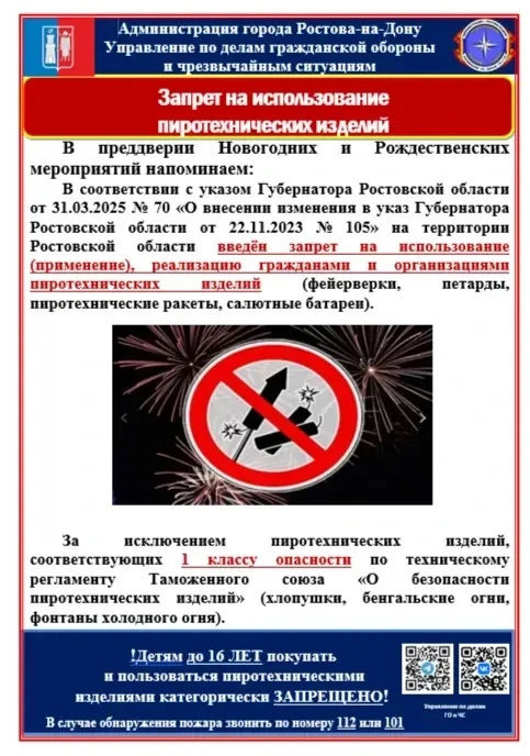 Управление по делам ГО и ЧС. Запрет на использование пиротехнических изделий.