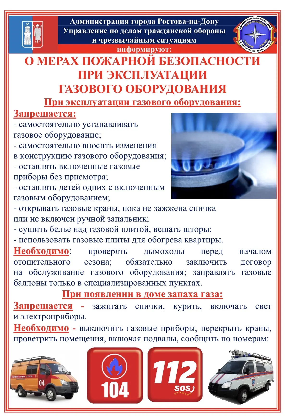 Управление по делам ГО и ЧС информирует: О мерах пожарной безопасности при эксплуатации газового оборудования.